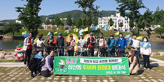 순천시 삼산동은 ‘321삼산동 두바퀴 원정대’ 자전거 홍보단 발대식을 지난달 30일 용당뚝방길 벚꽃축제장에서 갖고, 동천 자전거길을 달리면서 본격 활동을 시작했다고 밝혔다.