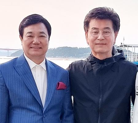 해남 마산출신 선배가수 박우철우측)과 함께 한 정용일.