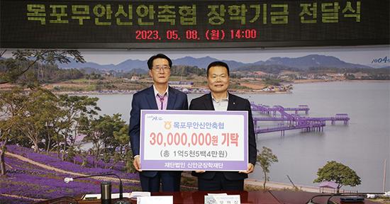목포무안신안축협 문만식 조합장과 임직원들은 지난 8일 신안군청을 방문해 지역의 인재양성을 위한 장학기금 3000만원을 신안군장학재단(이사장 박우량)에 전달했다.