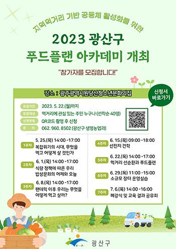 광주 광산구는 22일까지 ‘푸드플랜 아카데미’ 참가자를 모집한다고 밝혔다.