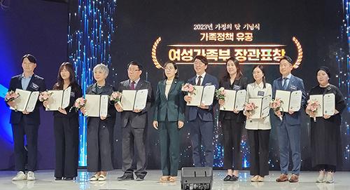 여성가족부가 주최하고 한국건강가정진흥원이 주관한 시상식은 가정의 달 5월을 기념해 사회 각 분야에서 가족 복지증진에 노력하고, 평등한 가족가치 실현 등에 기여한 유공자를 포상·격려하기 위해 마련됐다.