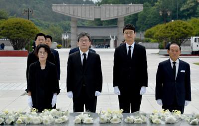 참배에 앞서 방명록에는 \'그 날의 역사를 잊지 않습니다. 민주(民主)와 공화(共和)의 미래를 열겠습니다\'라고 적었다.