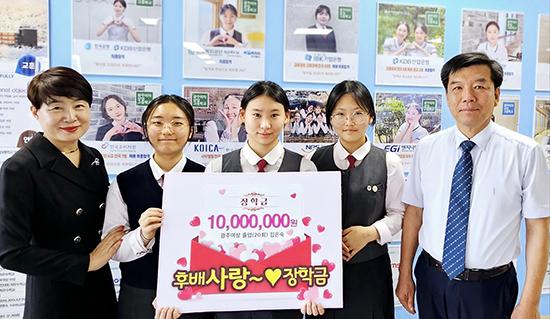 광주여자상업고등학교가 한 졸업생이 중견건설회사 임원으로 성장해 모교 후배들을 위해 장학금을 10년간 기탁하기로 했다고 15일 밝혔다.