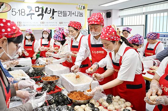 광주시 서구는 5·18민주화운동 43주년을 맞아 16일 나눔과 연대의 상징인 5·18주먹밥 재현 행사를 진행했다.