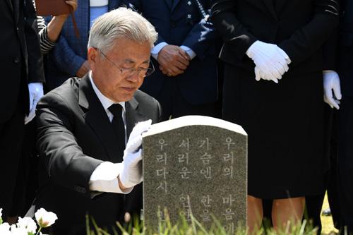 5·18민주화운동 43주년을 앞두고 오월영령에 참배한 문재인 전 대통령이 \"5·18항쟁은 대한민국 민주주의의 뿌리가 됐다\"며 헌법 전문 수록을 위한 초당적 협력을 강조했다.