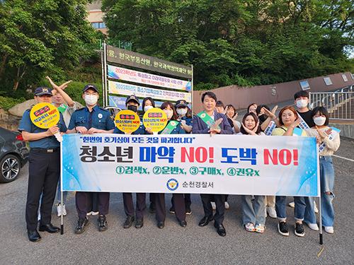 순천경찰서는 지난 16일 오후 7시 순천시 용당사거리에서 순천시청, YWCA 청소년유해환경감시단과 함께 청소년 마약범죄 예방 합동캠페인을 실시했다.