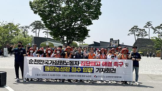 앞서 순천만국가정원 노동자들은 순천시의 ‘쪼개기 계약’ 등을 규탄하며 지난 해 12월 9일부터 순천시청 현관 앞에서 농성을 시작했다. 2023순천만국제정원박람회 개막식이 진행된 지난 3월 31일부터는 국가정원 동문에서 농성을 이어왔다.