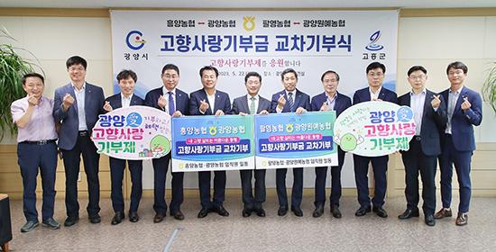 광양시는 광양농협과 고흥 흥양농협, 광양원예농협과 고흥 팔영농협이 고향사랑기부금 교차기부식을 개최해 내 고향 살리는 고향사랑기부에 동참했다고 23일 밝혔다.