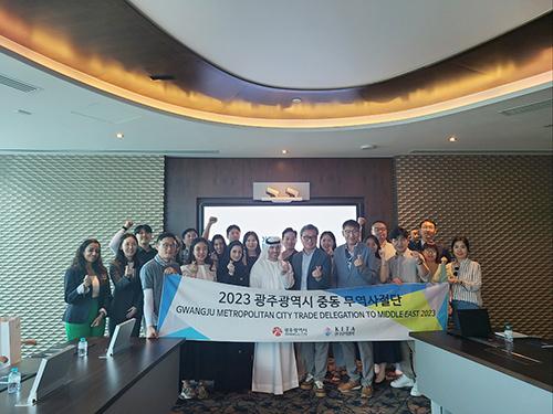 이계두 단장을 비롯한 시장개척단이 지난 23일 두바이 메트로폴리탄 호텔과 24일 아부다비 홀리데이인 호텔에서 ‘2023 광주시-중동 수출상담회’를 갖고 상담건수 총 144건, 상담금액 약 1000만 달러 규모의 수출 상담실적을 올렸다.
