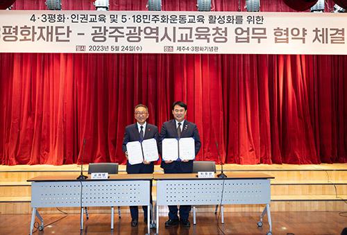 광주시교육청이 제주4·3평화재단과 지난 24일 오후 2시 제주4·3평화재단에서 5·18민주화운동교육 및 4·3평화·인권교육 활성화를 위한 업무협약을 체결했다.