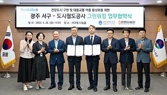 광주시 서구는 지난 26일 서구청 나눔홀에서 광주도시철도공사와 그린워킹 업무협약을 체결했다.