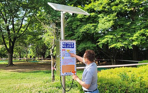 광주시 서구가 주민들의 이용이 잦은 산책로, 도시공원 등에 해충기피제 자동분사기를 추가 설치해 모기, 진드기 매개 감염병 예방에 나섰다.