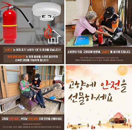 무안소방서는 “무안군 고향사랑기부제 답례품 목록에 주택용 소방시설 서비스를 추가했다”며 “고향에 계신 부모님과 지인분들께 안전을 기부하시길 바란다.”고 밝혔다.