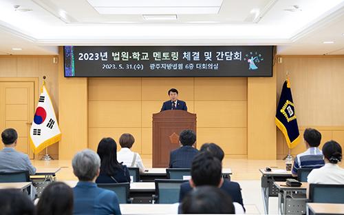 이날 멘토링 체결식에는 이정선 교육감, 광주지방법원 박병태 법원장, 멘티학교 업무 담당자와 멘토 법관이 참석했다. 양 기관장의 격려사를 시작으로 학생들을 위한 소통프로그램 소개, 멘토링 우수사례 공유, 멘토법관과 멘티학교 담당 교사 간 간담회 시간으로 진행됐다.