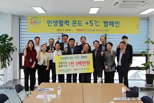 중소기업중앙회 광주전남지역본부는 경제심리 회복과 내수 진작을 위해 1일 여수 교동시장을 방문해 `민생활력 온도 +5℃ 캠페인\'을 추진했다고 밝혔다.