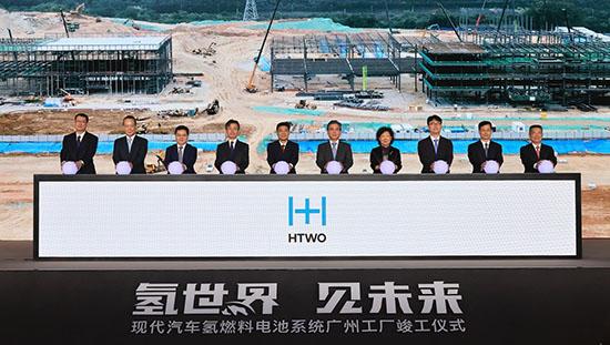 현대자동차그룹이 중국 광둥성 광저우시 황푸구에 대규모 수소연료전지 공장인 \'에이치투(HTWO) 광저우\'를 건설했다.