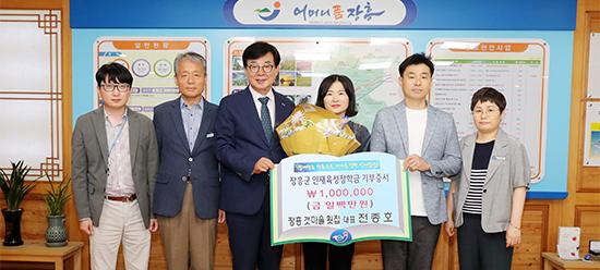 전종호 장흥갯마을횟집 대표는 지난 7일 장흥군인재육성장학회에 100만원의 장학금을 기탁했다.