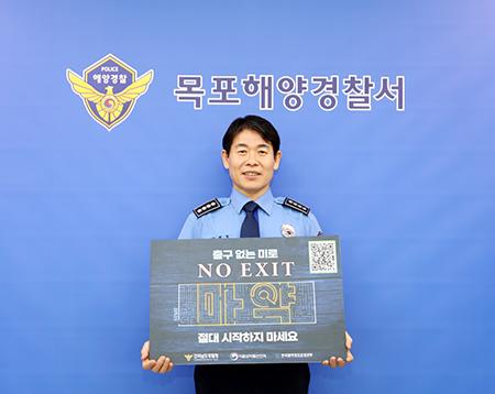 김해철 목포해양경찰서장이 마약범죄 예방 ‘노 엑시트(NO EXIT)’ 릴레이 캠페인에 동참했다고 12일 밝혔다.