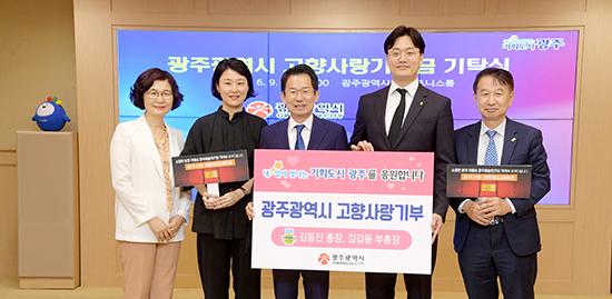 광주시는 이날 시청 비즈니스룸에서 김동진 광주대학교 총장과 누나 김유진 씨가 고향사랑기부금으로 100만 원을 기탁했다고 밝혔다.