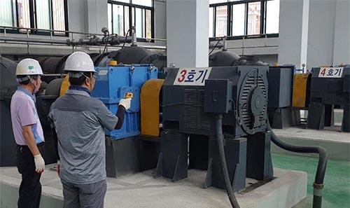 농어촌공사 전남지역본부가 장마철에 대비 배수펌프장 대비상태를 점검하고 있다. (사진=농어촌공사 전남본부 제공)