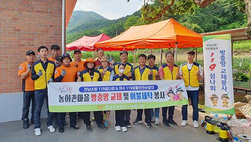 전남소방 직장동호회 119섬나회는 지난 10일 여수119생활안전순찰대와 여수시 율촌면 삼산마을을 방문해 노후 방충망 교체 및 이불세탁 등 봉사활동을 펼쳤다고 밝혔다.