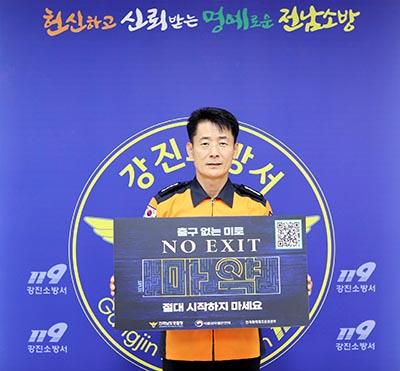 최기정 강진소방서장은 최근 증가하는 마약범죄에 대해 경각심을 일깨우기 위한 NO EXIT 릴레이 캠페인에 참여했다.
