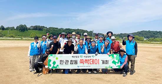 이날 행사를 위해 북구야구협회, 야구동호회, 그리고 업무 협약기관인 동구장애인 복지관과 공단 임직원이 북구종합운동장 야구장에 함께 모였다. 공단이 관리하는 북구종합운동장은 배수로 사이사이 투기 쓰레기로 인해 주민들이 불편함을 호소하던 곳이다. 쑥싹데이에서는 주민들에게 지속가능한 환경을 제공하고자 배수로와 운동장을 중심으로 환경 정화 활동을 실시하였다.