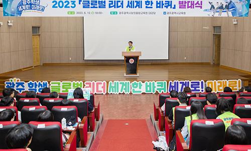 광주시교육청이 지난 12일 광주창의융합교육원에서 ‘2023 학생 글로벌 리더 세계 한 바퀴’ 발대식을 개최했다.