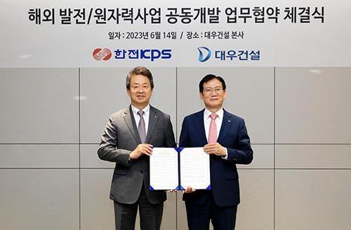 한전KPS와 대우건설은 14일 서울 대우건설 본사에서 해외사업 공동개발을 통한 시너지 강화와 원전 수출 확대를 위해 사업협력 양해각서(MOU)를 체결했다.