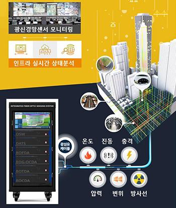 반면 광신경망 센서는 수km 이상의 광섬유 케이블이 포설된 모든 구간에 대해 별도의 통신·전원선 없이 온도, 진동, 변형 등 다중 물리량의 분포 측정이 실시간으로 가능하다.