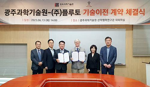 기술이전 협약식은 다런 윌리엄스 교수, 기술사업화센터 문희곤 실장, ㈜플루토 전홍열 대표, 이봉상 상무 등 주요 관계자가 참석한 가운데 지난 13일 지스트 산학협력연구관 대회의실에서 개최됐다.