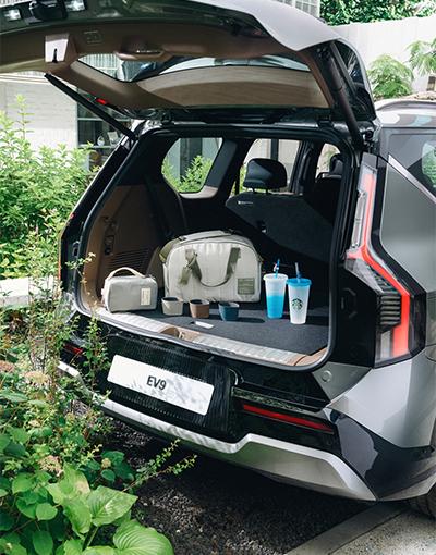 디자인 측면에서는 EV9의 디지털 패턴 라이팅 그릴을 디자인 포인트로 형상화하고, EV9과 스타벅스의 로고를 활용해 양사의 아이덴티티를 반영했다.