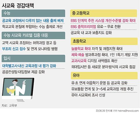 연간 71만원이 드는 중학생 EBS 프리미엄 강의를 무료로 전환하는 등 자기주도 학습을 지원하고, 수능 전문 대형학원을 중심으로 부조리 단속을 강화한다.
