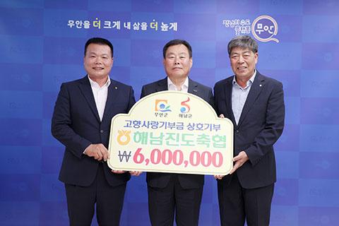 전남 무안군은 해남진도축협과 목포무안신안축협이 지난 23일 고향사랑기부제의 성공적인 정착과 지역 상생발전을 위해 상호 교차 기부에 동참했다고 밝혔다.