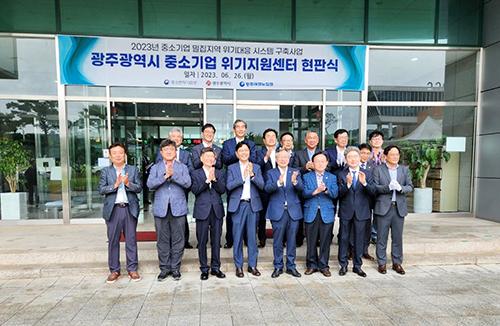 광주테크노파크는 중소벤처기업부 사업인 중소기업 밀집지역 위기대응 시스템 구축사업의 일환으로 추진하는 광주시 중소기업 위기지원센터 현판식을 지난 26일 본부동에서 개최했다.