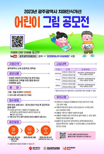 광주시가 주최하고 전남대학교병원(광역치매센터)이 주관하는 ‘2023 광주시 치매인식개선 어린이 그림 공모전’은 치매에 대한 부정적 인식을 개선하고 치매 친화적 공감대를 형성하기 위해 마련됐다.