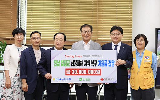 농협은행은 산불 피해지역 복구와 이재민 지원을 위해 기탁금 3000만원을 대한적십자사를 통해 함평군에 기부했다.