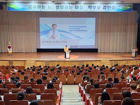 광주시교육청이 28일 광주교육연수원 대강당에서 광주 관내 유·초·중·고 학부모 및 시민 450여 명 대상으로 ‘공부하는 뇌, 성장하는 마음’ 학부모 강연회를 운영했다.