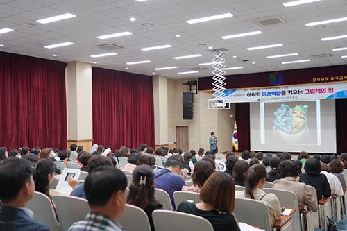 본 연수는 2023 전남교육 발전과제인 독서·토론·인문교육 활성화와 연계한 유치원 유아 독서교육 활성화를 도모하고, 유아 발달 단계에 알맞은 독서교육 방법 및 현장적용력을 증대하고자 가톨릭대학교 의정부성모병원 김영훈 교수의 \'4차 산업혁명시대, 우리 아이의 미래역량을 키우는 그림책의 힘\'이라는 주제로 운영된다.