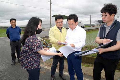 문영훈 광주시 행정부시장이 4일 오후 집중호우 피해 지역인 남구 구소동 지석천을 방문, 배수로 정비와 대지마을 배수펌프장 복구 여부를 점검하고 있다. (사진 = 광주시 제공)