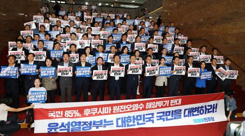 민주당은 오염수 해양 방류를 저지하기 위한 모든 방안을 강구한다는 방침이다. 오염수 투기 저지 종합 컨트롤타워 구성, 대책위 방일, 국회 청문회 등을 거론했다.