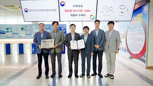 중소벤처기업부 광주·전남지방중소벤처기업청은 7월 5일(수) ’23년도 글로벌 강소기업 1000+에 선정된 ㈜우리로를 방문하여 지정서 및 현판 수여식을 가졌다.