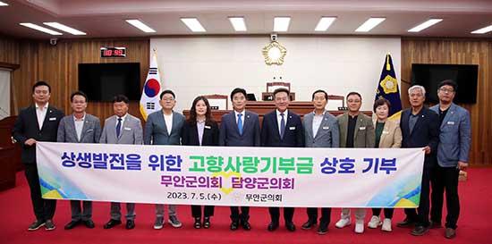 무안군의회와 담양군의회가 고향사랑기부제의 성공적 안착과 지역 상생 발전을 위해 상호교차 기부에 나섰다.