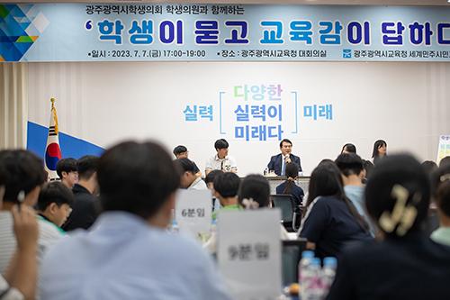 광주시교육청이 지난 7일 시교육청 대회의실에서 광주시학생의회 학생의원과 함께하는 ‘학생이 묻고 교육감이 답하다’ 행사를 실시했다.
