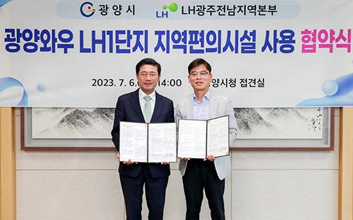 광양시는 시장 접견실에서 광양와우 LH1단지 지역편의시설 사용을 위한 협약을 체결했다고 10일 밝혔다.