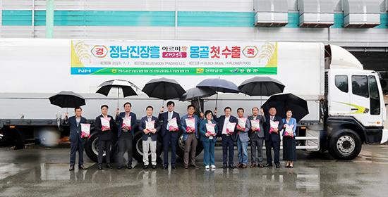 정남진농협쌀조합공동사업법인에서는 정남진장흥에서 생산된 전남지역 대표브랜드 새청무쌀을 전남도와 장흥군과 연계해 몽골 수입업체 blue moon trading LLC와 한국 수출업체 ㈜BleckBean과 ㈜FlowerFood를 통해 지난 7일 새청무쌀 15톤을 몽골 첫 수출했다.