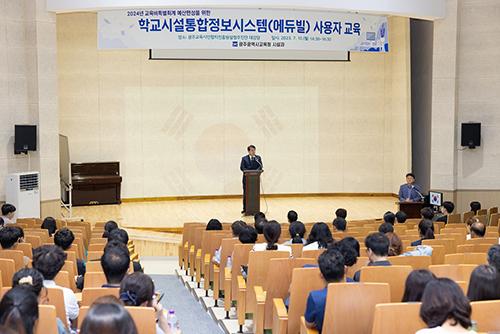 광주시교육청이 지난 10일 학교시설통합정보시스템(이하 에듀빌) 사용자 교육을 전체 공·사립학교 및 직속기관 시설 담당자 대상으로 실시했다.