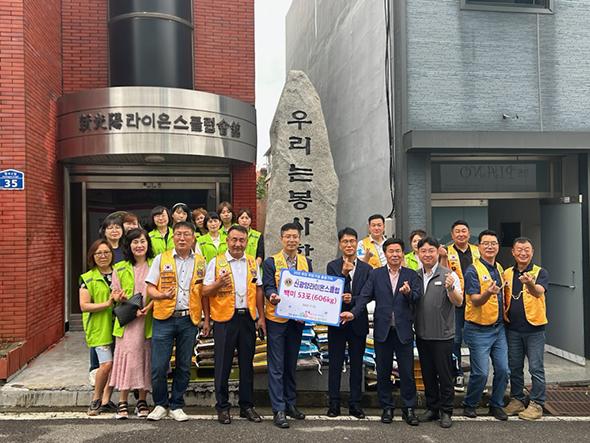 광양시 신광양라이온스클럽은 13일 클럽 회원과 사랑나눔복지재단 관계자 등 20여 명이 참석한 가운데 ‘회장 취임 기념 축하쌀’ 606kg을 (재)광양시사랑나눔복지재단을 통해 옥곡면과 광영동에 지정 기탁했다.