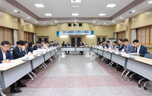 광주시교육청이 13일 시교육청 대회의실에서 국·과장 및 공약 추진 부서장이 참석한 가운데 이정선 교육감 주재로 ‘2023년 상반기 교육감 공약사업 추진현황 보고회’를 가졌다고 밝혔다.