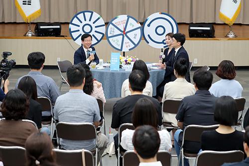 200여 명의 직원들이 참여한 가운데, 민선 8기 1년 주요 성과와 향후 구정 운영 방향을 공유하고, 일하는 방식 개선 등을 주제로 정책 대화를 진행했다.